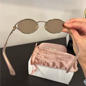 Miu Miu Logo Oval Sunglasses 52YS in Gold - Includes Velvet Case & Pouch