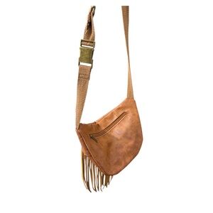 Fringed Tan Leather Fanny Pack and Crossbody Bag