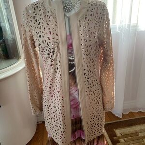 Guillaume Chic Beige Laser-Cut Zip Up Jacket Sz S