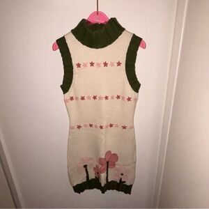 Chic sleeveless dress with floral design. Features green accents and pink flowers. Perfect for casual outings.
