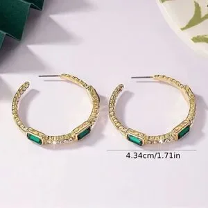 💚 Luxury Hoop Earrings Full Of Green Rhinestones Zinc Alloy Jewelry Vintage Style Personality Ear Ornaments. Gold filled with crystal accents. Perfect for everyday or formal. Post backs hypoallergenic & nickel free Lots of sparkle 💚
