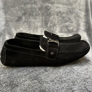 Louis Vuitton Suede Driving Loafers Men's 6.5 Black LV Hardware Made Italy