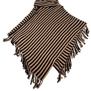 The Limited oversize Stripe Poncho Sweater Black Tan Fringe Turtleneck XS/S