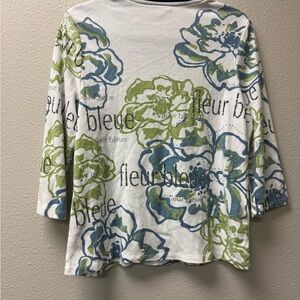 Allison Daley Floral V-Neck Top Blue Green 3/4 Sleeve Medium