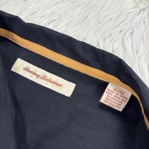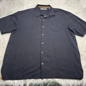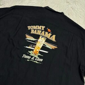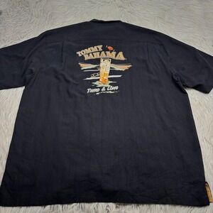 Tommy Bahama Men's XL Black Silk Embroidered Hawaiian Shirt Football Long Island