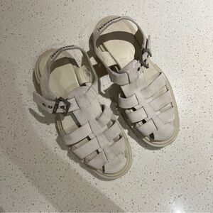 Stylish All Saints sandals with a chunky sole. Cream straps and tan base. Ideal for casual outings.