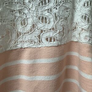 a.n.a Lace Yoke Pink Stripe 3/4 Sleeve Top L