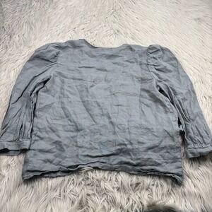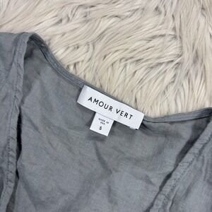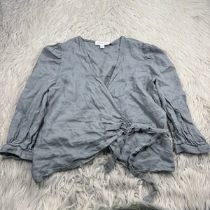 Amour Vert Women's S Gray Wrap Blouse 3/4 Sleeve Cottagcore Coastal Preppy