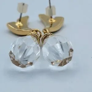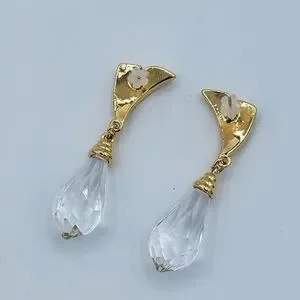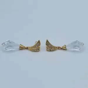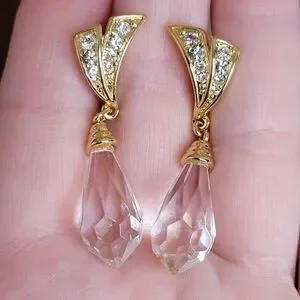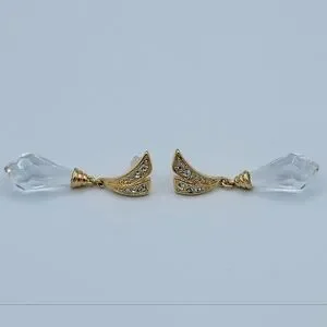 Vintage Gold Tone Earrings Crystal Teardrop #2271