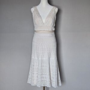 Tadashi shoji ADELINA Lace Floral Midi Dress Ivory Petal in wonderful condition. Non-smoking, no pet home. This elegant lace dress features a flattering V-neck and intricate detailing. Perfect for any special occasion, its cream color adds a touch of sophistication.