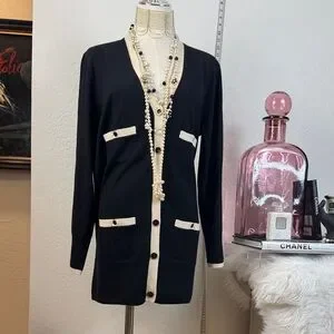 NWOT J.Crew Long Merino Wool Cardigan - Black & Ivory - Size M