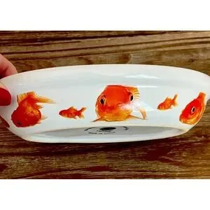 Gibson Goldfish Koi Oval Trinket Soap Cat Food Ceramic Bowl Dish 6 1/2" X 5" EUC