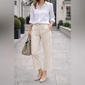 Rag & Bone Ivory Pinstripe Cropped Pants Size 4 – Frayed Hem