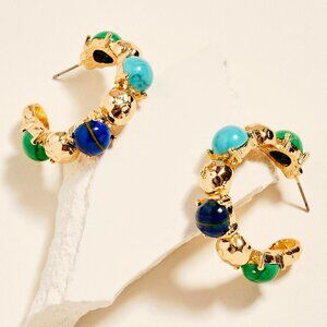 Tuckernuck Gold & Turquoise Bead Hoop Earrings / NWOT, Never Worn