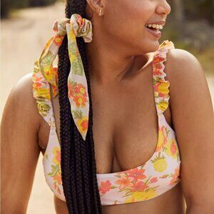 Aerie Printed Pastel Floral Ruffle Scoop Neckline Bikini Top Size S NWOT