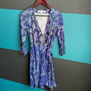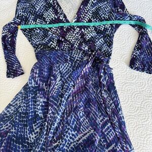 Diane Von Furstenberg Blue and Purple Long Sleeve Dress