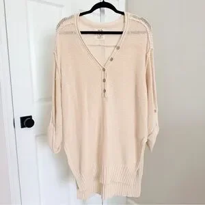 Free People We The Free Firefly Oversized Knit Tunic Sweater Ivory Size XS
