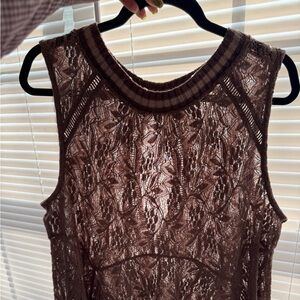 Free People Maisie Mauve Sheer Lace Tank Top Size L