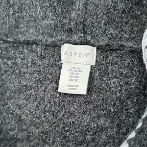 Item Description: Aspen brand, open front cardigan sweater, women’s XL, lose fit, hoodie, neck line, long length, stretchy, front pockets, side slits, lightweight, tight knit