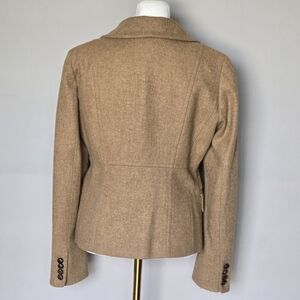 J. Crew Y2K Classic Wool Tan Equestrian Preppy Academia Women's Blazer in wonderful condition. Non-smoking, no pet home. Light wear/darkening at interior lining. See pics for details and ask any questions.