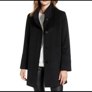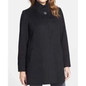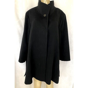 FLEURETTE LORO PIANNA Wool Stand Collar Car Pea Coat Jacket Black Pocket…