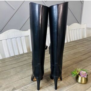 Ralph Lauren Purple Label Renley Knee High Boots Black Burnished Leather Size 6