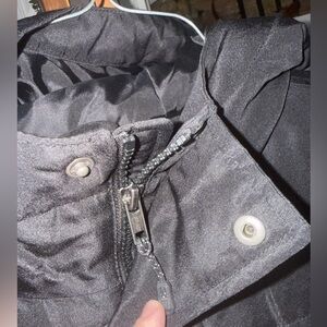 Durable black raincoat with hood. Ideal for rainy days.