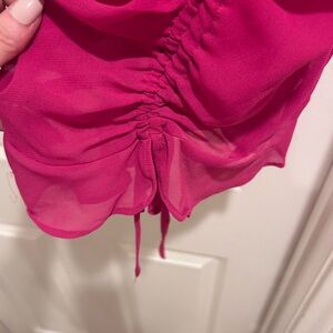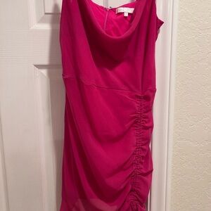 Turn heads with this chic fuchsia mini dress. Its vibrant hue and sleek design make it a must-have for your wardrobe.