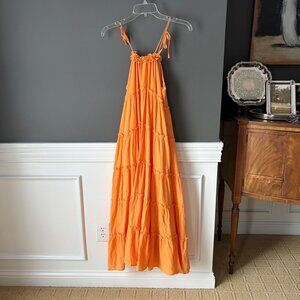 Charlie Holiday Orange Tiered Long Flowy Maxi Dress Cotton Tie Strap Size Small
