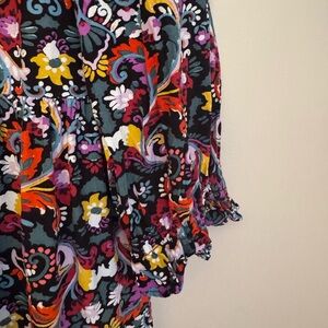 LOFT long sleeve button front dress in a women’s Medium Petite (MP). Features an allover floral paisley print with a full button-down front, ruffle neckline, and elastic ruffle cuffs. Lightweight and flowy- made of 100% viscose. In great condition- no stains, holes, or flaws. Fast shipping!