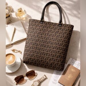 Authentic Fendi Zucca monogram tote featuring the iconic double-F pattern throughout with leather trim and gold-tone hardware. A classic early-2000s minimalist luxury piece — lightweight, practical, and always in demand.