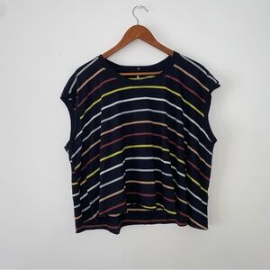 Nwot Free People Rising Tide Printed Relaxed Boxy T-Shirt in Black/Stripe size S