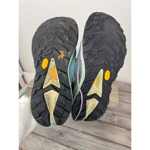 Hoka Clifton 9.5 Womens Trail Running Shoes Teal Lavender Yellow Vibram Sneakers
