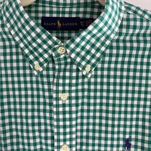 Classic green plaid shirt by Ralph Lauren. Perfect for casual outings. Comfortable and stylish.