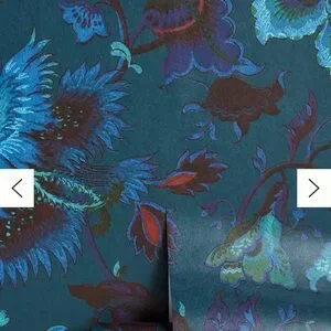 Vibrant floral wallpaper with blue and red hues. Perfect for adding a touch of elegance to any room.