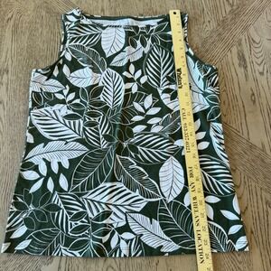 Talbots Petite Medium Green White Tropical Leaf Print Sleeveless Knit Top Tank