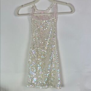 Shine in this elegant cream sequin lace halter top. Perfect for a night out or special occasion.