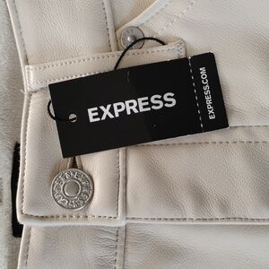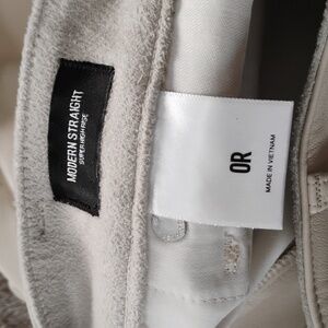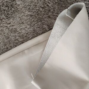 Cream faux leather NWT five pocket pants modern straight super high rise. Pants are unhemmed and the inner brand tag is marked as shown.