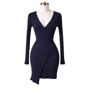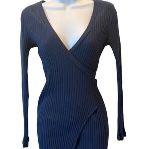 Navy Ribbed Wrap Bodycon Dress Long Sleeve Charlotte Russe Womens S USA