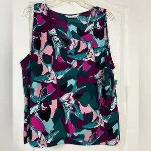 NWT Nine West XXL Pink and Teal multicolored Sleeveless Blouse