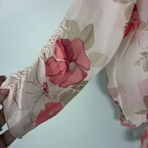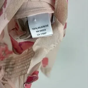Banana Republic Silk Floral Top Tie Front Blouse Women's S Pink Boho Festival