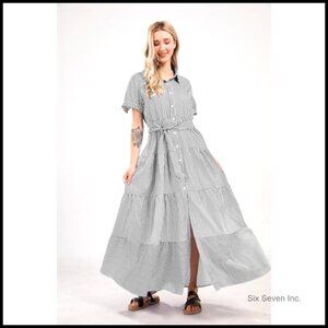 ✨ Striped Maxi Shirt Dress with Tie Waist