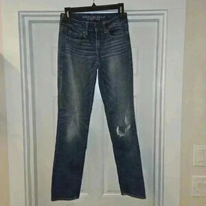 American Eagle Outfitters Womens Straight Super Stretch Distressed Jeans Size 2