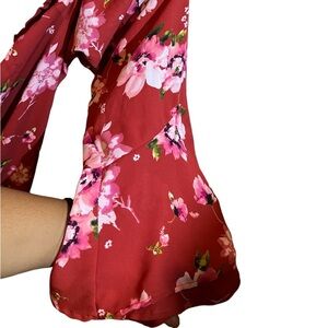 Great Condition! Forever 21+ PLUS SIZE 3X Red with Pink Floral Designs Off the Shoulder Top with Ties on the front and back of the shirt as well as a widened sleeves with a flare. Comfortable & Light weight material
