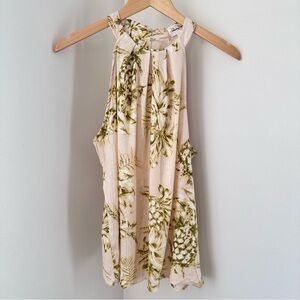 Panama Jack Tropical Sleeveless top featuring a pineapple pattern and a high neckline with a breathable linen blend fabric.