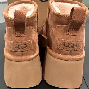 Stylish UGG ankle boots. Soft suede exterior. Cozy interior lining. Durable sole.