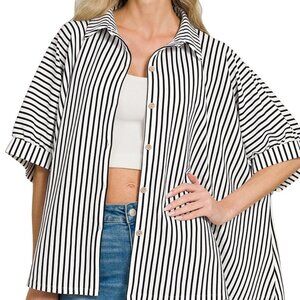 NWT Zenana Oversized Stripe Button Down Shirt