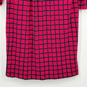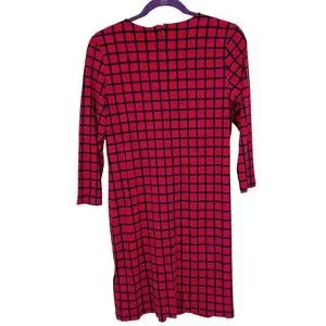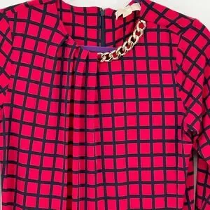 Michael Kors Mod Geometric Grid Print Shift Dress Red Black Chain Neckline Small