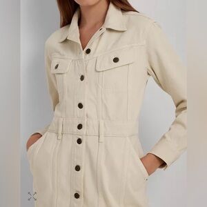Lauren Ralph Lauren Denim Utility Shirt Dress Cream Women’s Size 6 Long Sleeve