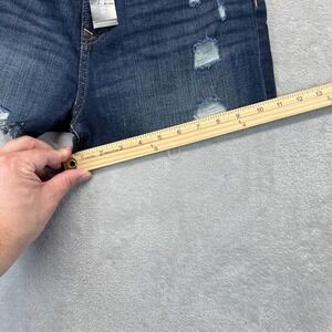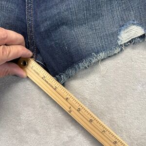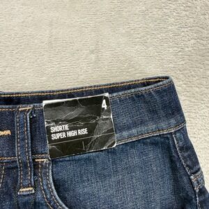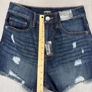 Express Shorts Women's 4 Shortie Super High Rise Blue Distressed Raw Hem Denim